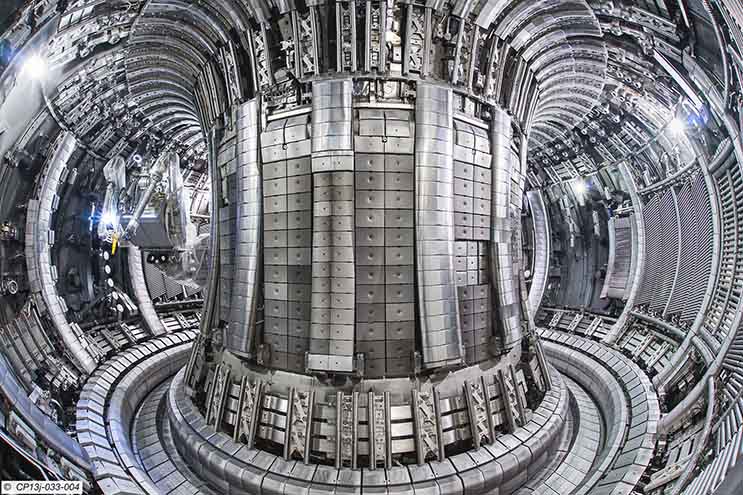 Innsiden av en fusjonsreaktor (Eurofusion/JET). Foto: UKAEA