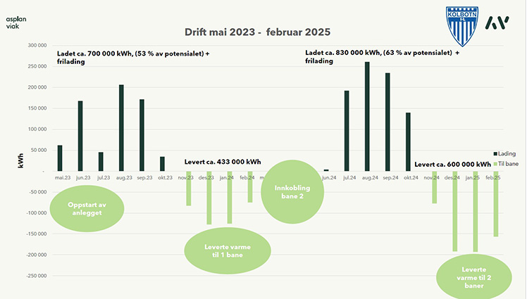 I varmesesongen 2024/2025 ble det levert cirka 600 000 kWh ut på banene.