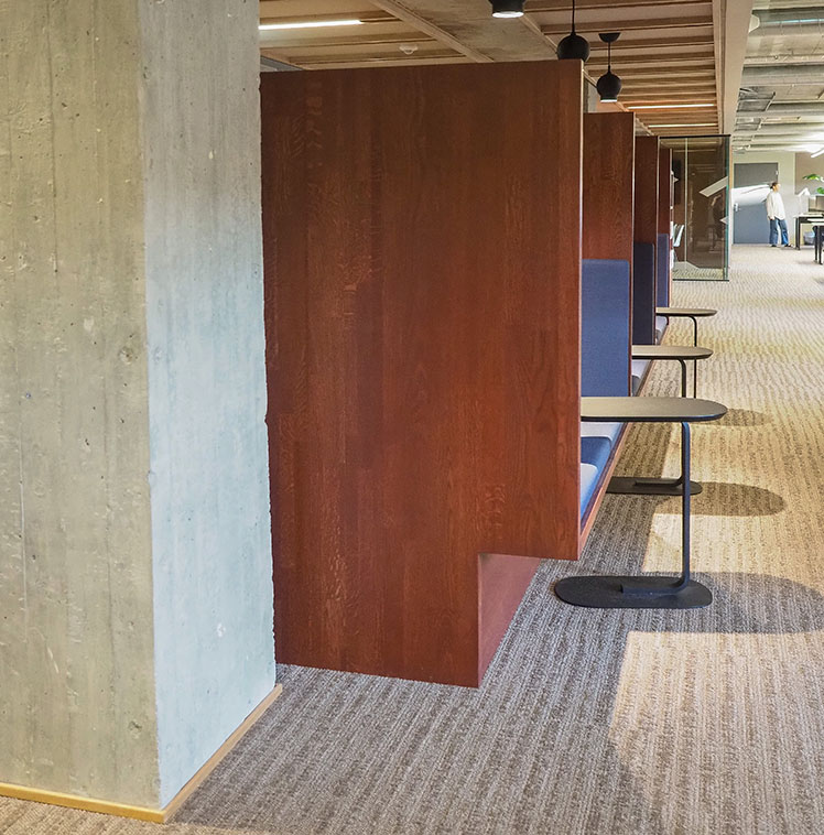 Arbeidsplassene er utviklet etter brukerinvolvering og dybdeintervjuer, og gir fleksible løsninger som støtter både fokusarbeid og samarbeid. Dette gjør bygget langt mer attraktivt for et marked som etterspør arealeffektivitet, fleksibilitet og godt inneklima.