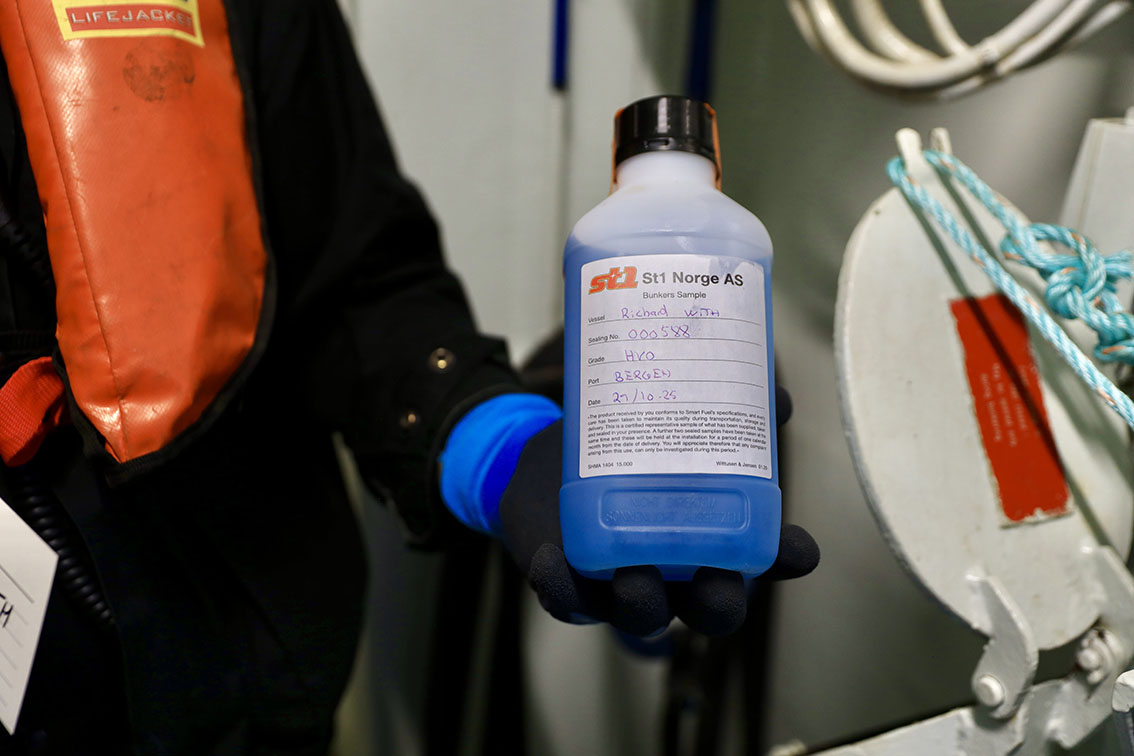 Seilasen går på HVO100, et biodrivstoff fra St1. Det er laget av avfalls- og restprodukter som brukt matolje og fettavfall – råstoff som ellers ville gått tapt, men som nå får nytt liv som energi.
