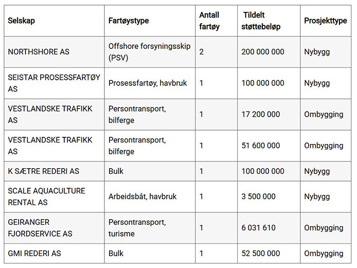 Siden alt henger sammen med alt, må fartøy ha muligheter for å lade, og ladeanleggene må ha besøk av fartøy. I denne runden har fem nye fartøy og fire ombygginger fått tilsagn om støtte, inkludert ett prosjekt med rotorseil. I tillegg er det fem nye ladeanlegg på gang. Prosjektene viser at batteridrift passer til de fleste behov til sjøs.