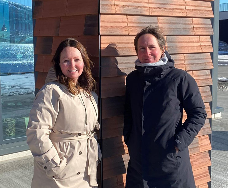 Seniorarkitekt Bonnie Casteleyn (til høyre) og bærekraftsrådgiver Vibeke Hammervold fra Asplan Viak har ledet prosjektet og BREEAM NOR Excellent-sertifiseringen i godt samarbeid med entreprenøren Econor. Foto: Asplan Viak